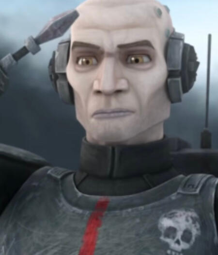 Tech is the technology and computers expert of the Bad Batch, and his design is farthest removed from Jango's: white skin, European features, straight, brown hair, and an unfortunate hairline make up the cognitive genius of The Bad Batch. His appearance and writing fall in line with The Smart Guy member of the team.Fans are worried about the story behind Tech's appearance: a series of "desirable mutations" and "genetic enhancements" have produced a clone that's come out with pale skin, brown hair, and a European face. The message this sends--that physical appearance has some connection to genetic enhancements--is a painful one that makes the impression to many fans of The Bad Batch that whiteness and genetic superiority are linked.Tech is unsurprisingly also the least likely to fight. Besides some sarcastic comments here and there, he's very docile and calm, with DBB describing him as "breezy". Contrast this with Wrecker, who's the complete opposite in both personality and appearance. This goes even further when Wrecker's chip takes control and he attacks Tech; Tech does not fight back and is the only one besides Omega not to make an effort to stop him. In fact, Tech and Wrecker's interactions in the first episode and rest of the series compound the racism in both their writing: Tech, the (white) Brains mocks or belittles what Wrecker, the (brown) Brawn, says.Even his voice has been removed from the typical Māori accent that all clones are meant to sport. Dee Bradley Baker himself said "Tech is a little more British in his sound". Why does the genius need to sound British? Not only does this ignore the fact that they all grew up in the same environment and so should have the same accents, Tech's deviation is worrying in its implications on what a smart person is "supposed" to sound like, versus what those who aren't geniuses sound like.DBB also says about Tech: "He's almost like someone who's on the spectrum (1), almost (time stamp 16:05) Some autistic fans of The Bad Batch enjoy Tech's character, while others have noted that Tech is a cliche of geniuses in general and a stereotype of autistic people in particular. First, many autistic people portrayed in media are geniuses or savants (section 4) with little awareness/replication of the emotions of those around them. They're often portrayed in varying degrees as socially awkward with a tendency to infodump. This is not to say that Tech's infodumping is in any way wrong or detrimental to his character, and this is also not to say it's wrong that he's been coded as autistic. This is also not to say that there is any "right" or "wrong" way to be autistic.However, other autistic fans are upset that Tech is a common Hollywood stereotype of autism: a white male savant, especially one whose special interest is useful to the neurotypical people around him. This specific character type can be found in other media, like Sheldon from the Big Bang Theory/Young Sheldon, Spencer Reid from Criminal Minds, and Shaun Murphy from The Good Doctor. Disability activist and YouTuber Jessica Kellgren-Fozard talks about autism tropes in media and why they can be harmful. While there are autistic people who share the same traits as these characters, there are other autistic people who would like to see their own traits represented. For instance, many autistic people stim, but many more allistic (non-autistic) writers of autistic characters do not give their autistic characters this trait. They also leave out sensory issues, like food pickiness or textural and noise sensitivities. Here is an article that explains the farther-reaching results of poor portrayals of autism in Hollywood, such as cis white males being disproportionately represented over gender minorities and people of color.The fact that he is a white-presenting autistic-coded genius adds more problematic layers to his character. There are exceedingly few brown autistic characters in media, and certainly none who can take the role of co-protagonist the way Tech does. Why is it that Tech couldn't be both brown and autistic? Why make him a two-fold stereotype? What does it mean when creators, in keeping with Hollywood Autism, default to an appearance and voice that is so far removed from the original actor to portray smartness while simultaneously playing into stereotypes about certain kinds of intelligence?Season two of The Bad Batch confirmed Tech's autism. Many autistic fans celebrated, as this was considered by them to be a milestone in Star Wars. However, Tech ends up dying in the season finale, leaving many autistic fans upset at the loss of representation. At the same time, for the combination of racism and stereotyping mentioned above, there are also autistic fans who don't feel anything has been lost. According to them (many of whom are people of color), Tech was such a narrow and racist portrayal of autism that he was doing more harm than good.From his Star Wars site profile:He may not look like a typical clone, but Tech is a valuable soldier in the Republic army. The result of genetic manipulation like the rest of his special unit, Clone Force 99 (or the Bad Batch), Tech's aptitude for science and technology are unmatched by man or machine.From his Wookieepedia page:His appearance differed from that of normal clones of Jango Fett in that he appeared younger, leaner, and fairer than his genetic template.